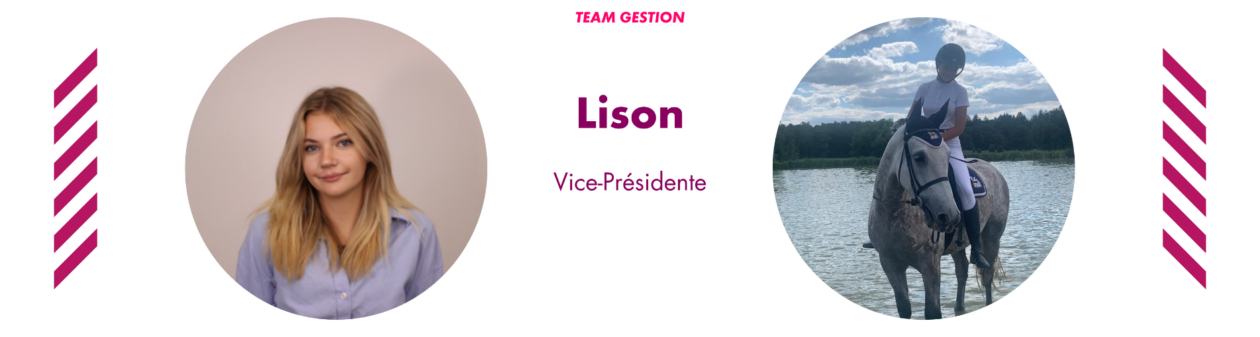 “Je m’appelle Lison et je monte à cheval depuis presque 18 ans. Aujourd’hui, je fais exclusivement du dressage au Haras des Loges et j’espère reprendre les compétitions la saison prochaine.”