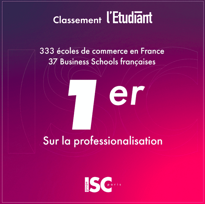 L’ETUDIANT est un classement de référence. Nous sommes très fiers de figurer à la 16ème place, avec 6 places de plus qu’en 2023. Près de 40 écoles de commerce apparaissent dans ce classement qui prend en compte une méthodologie bien précise. Excellence académique, professionnalisation, international, ouverture sociale, environnement … tous ces critères sont étudiés à la loupe. L’ISC Paris est en première place en ce qui concerne la proximité avec les entreprises.