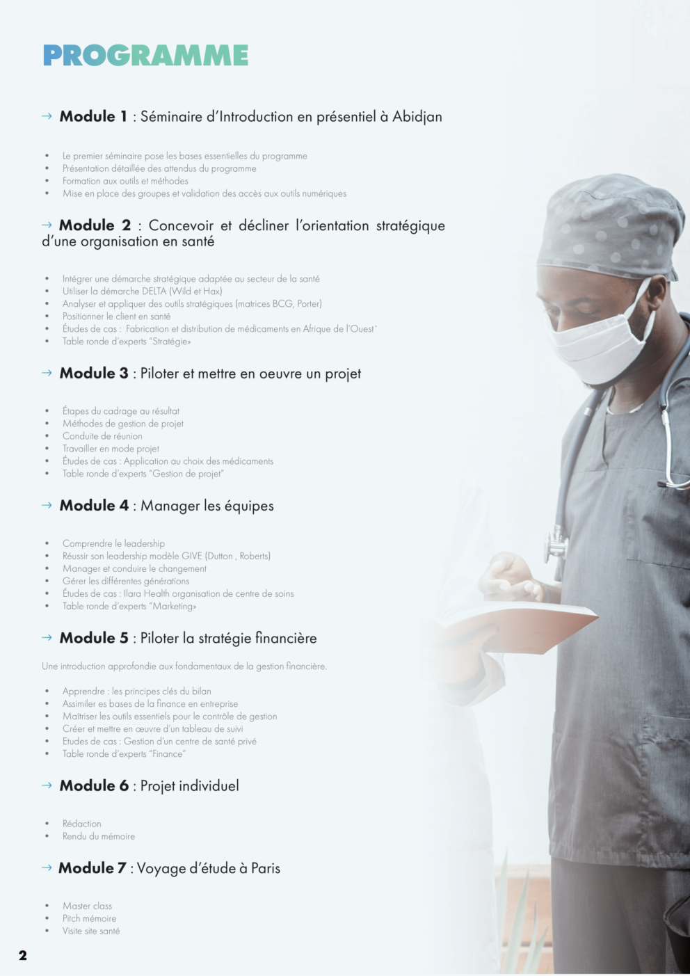Grâce à une approche innovante, alliant expertise internationale et adaptation aux réalités locales, ce certificat vous prépare à devenir un acteur clé de la transformation et du développement durable des structures de santé.