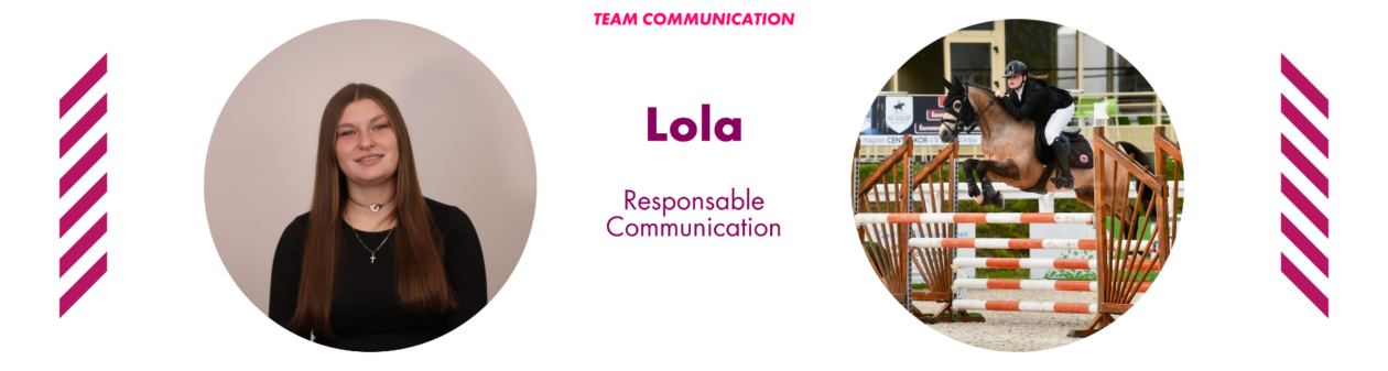 “Je m’appelle Lola et je monte depuis petite. L’année dernière, je faisais encore le circuit Poney, j’ai tourné en CSO jusqu’en 115, et cette année, on me confie une jument pour commencer les épreuves Amateur.”