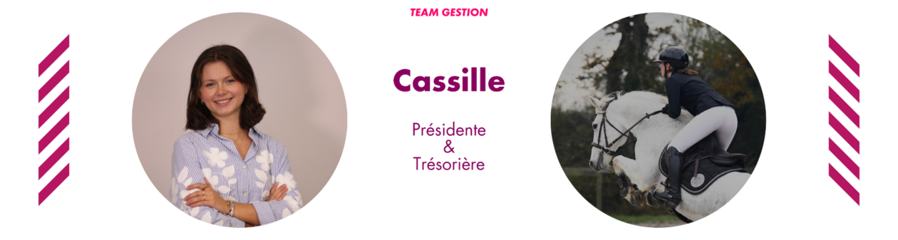 “Je suis Cassille, je viens d’Orléans et je suis propriétaire de mon cheval. Avant, je montais à cheval sur mon temps libre, souvent tard le soir. Maintenant, je peux monter à cheval l’après-midi, ce qui me permet un entraînement optimal pour la compétition ! J’ai été fièrement nommée à la présidence de l’association !”